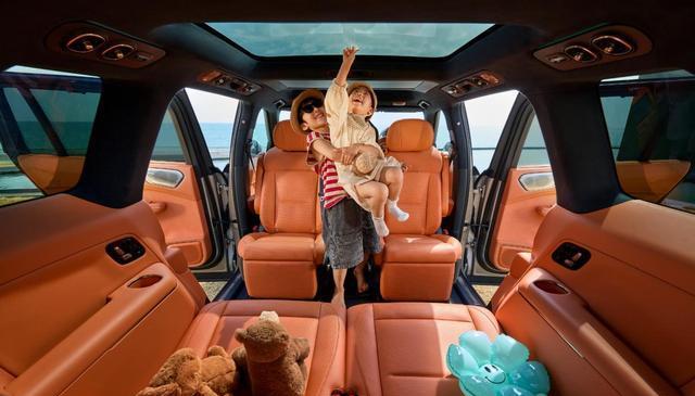 而二排更偏向家庭活动区定位。双180°电动旋转与超长滑移行程,让孩子能面对面玩玩具,长辈能互相聊天,也能让乘客轻松调整到休息姿态。像车载冰箱、侧窗隐私遮阳帘、30英寸6K双巨幕、四音区独立音响这些配置,则更像是把家庭出行中经常出现的细节逐个优化,实用性大于噱头,难怪不少用户说“空间焦虑明显被缓解了”。